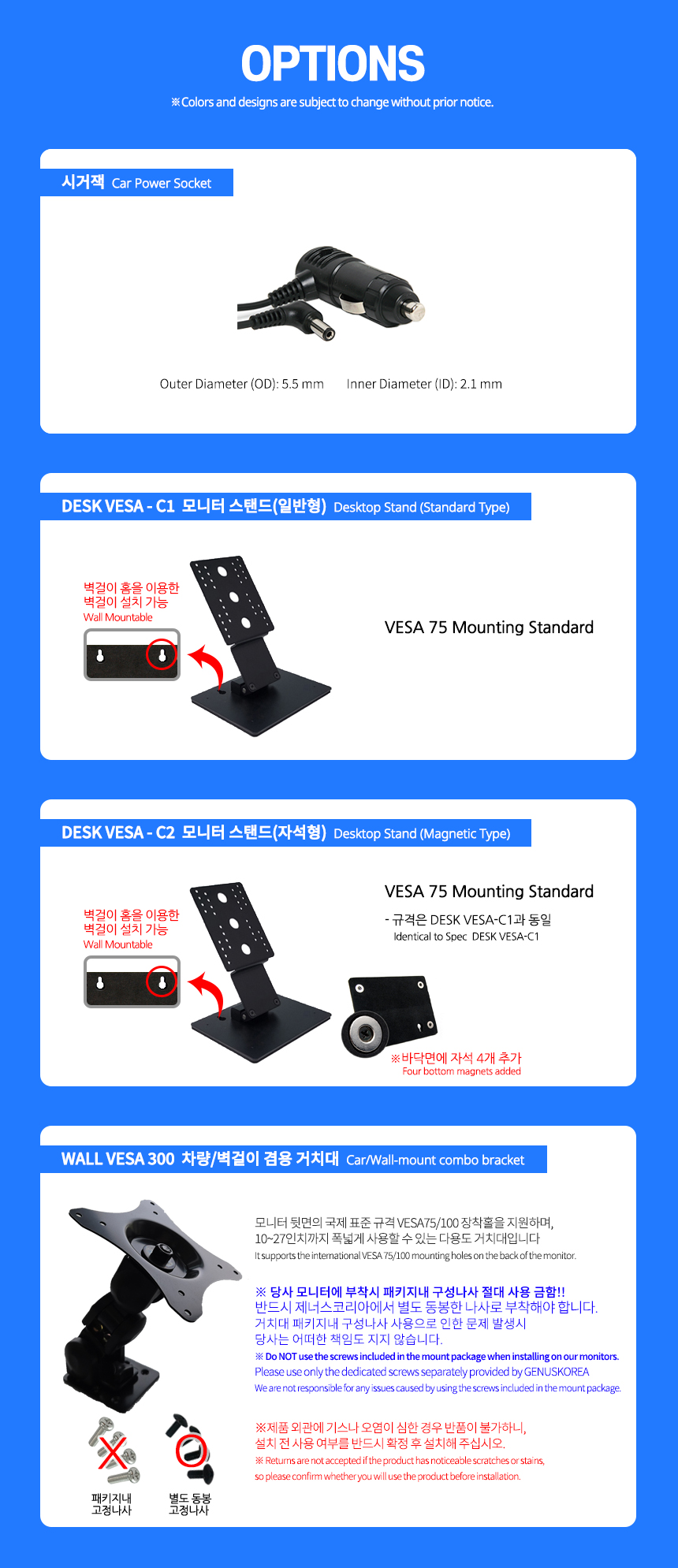 WALL VESA 차량/벽걸이 겸용 거치대(+39,500)