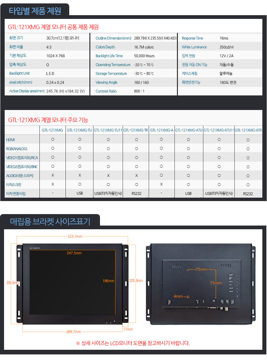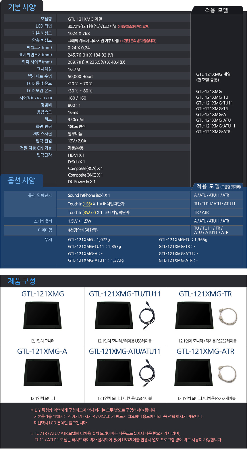 12.1인치 LCD(LED) 터치모니터 GTL-121XMG-ATU