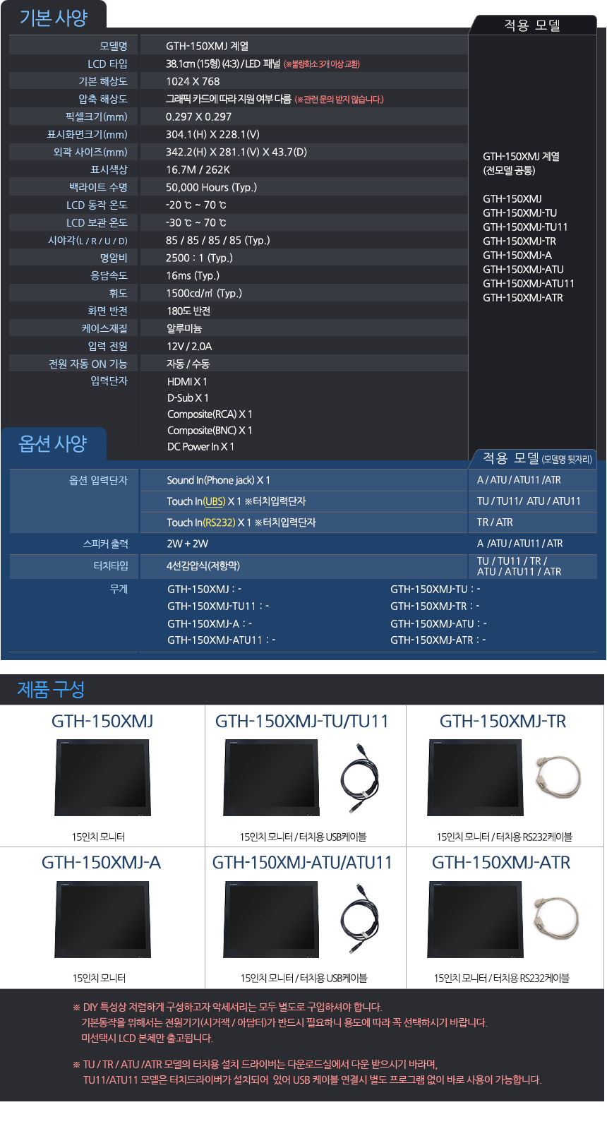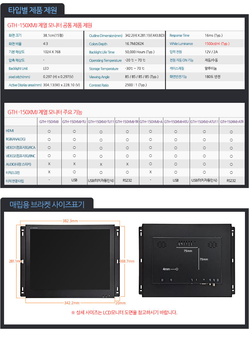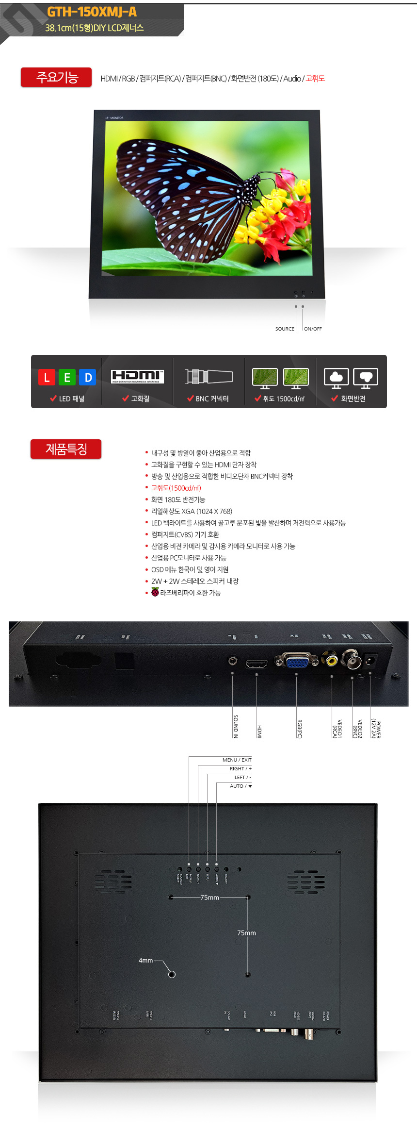15인치 고휘도 LCD(LED)모니터 제너스 GTH-150XMJ-A